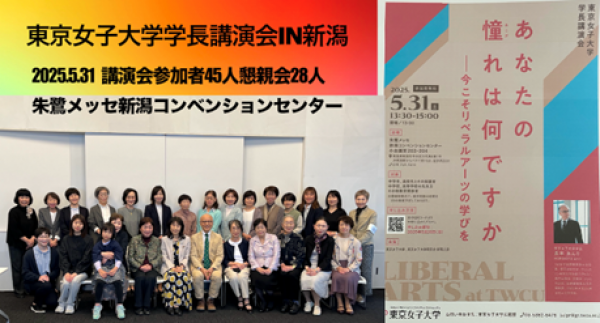新潟支部では大学と共催で2025年5月31日に21年ぶりの学長講演会を行いました。会場は朱鷺メッセ新潟コンベンションセンター、参加者は講演会45人懇親会28人でした。
