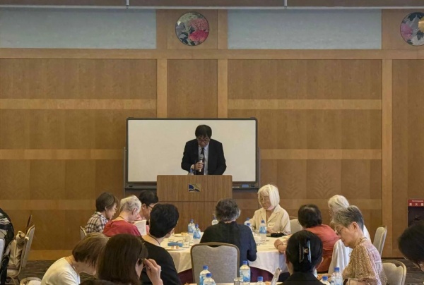 2025年7月5日横浜みなとみらいのホテルナビオスにて、61名の支部会員を迎えて支部総会と講演会を開催しました。講演会は東京女子大学 現代教養学部長 日本文学専攻教授山本真吾先生による『平安言葉を復元する ―「源氏物語」、そして映画「陰陽師ゼロ」―』です。