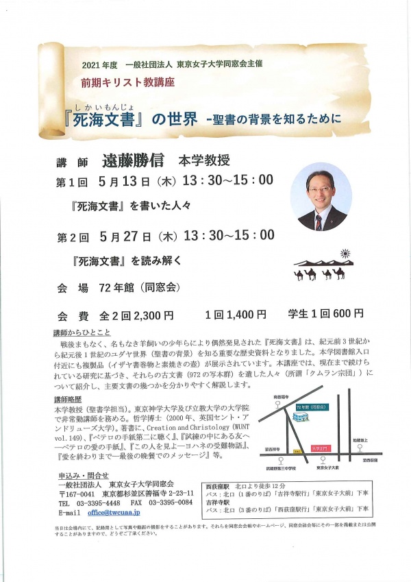 前期キリスト教講座「『死海文書』の世界―聖書の背景を知るために」