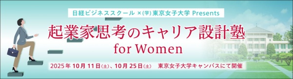 【テーマ】:Tokyo Woman's Career College 起業家思考のキャリア設計塾 for Women 【講 師】:小西由樹子先生(現代教養学部 経済経営学科 准教授/エンパワーメント・センター長) 【日 時】:第1回 2025年10月11日(土) 13:00~17:00 第2回 2025年10月25日(土) 11:00~18:00 【場 所】:東京女子大学24号館24201教室 【対 象】:女性(卒業生・一般)